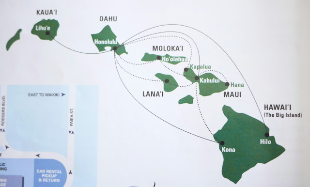 目前我們只安排在夏威夷停留八天七夜. 如果改為前三晚住檀香山威基基, 後四晚住大島(租車), 最後一天早上直接從大島搭飛機回檀香山機場, 然後從那裡再搭飛機回台灣.