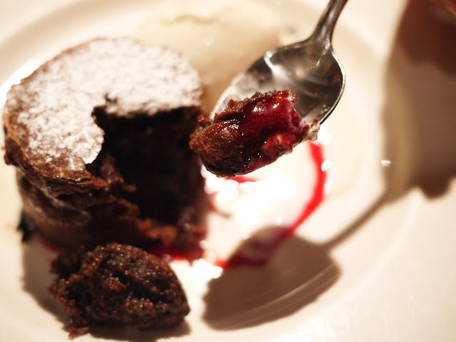 我們點了一個Crab cake, 果汁, Lava chocolate cake, beef back ribs, 還有鮭魚~!